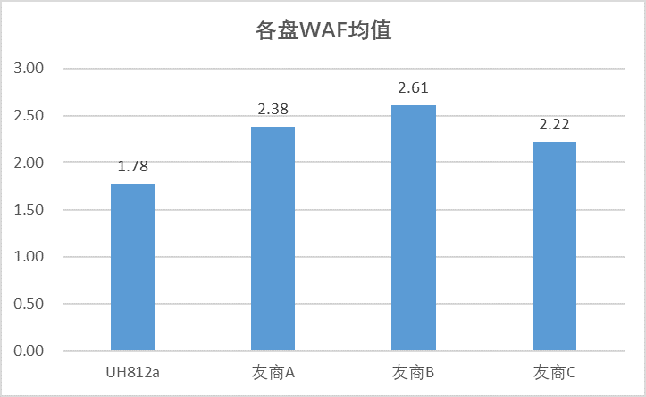 UH812a/UH832a系列采用動態冷熱數據分層機制與多流協同控制技術,實現1.78超低寫放大系數(WAF),通過智能化的數據生命周期管理,顯著延長SSD使用壽命,對比各友商優勢明顯,為高負載企業級場景提供可靠的存儲保障。