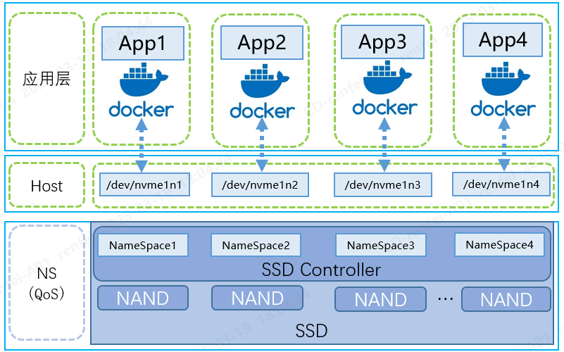 相較于傳統機械硬盤,SSD憑借其高速讀寫能力和低延遲特性,不僅突破了存儲I/O瓶頸,更能與Docker輕量級容器化技術深度契合——通過減少數據存取等待時間,充分釋放存儲性能潛力,為容器化部署MySQL的高效運行筑牢存儲根基。Namespace(以下簡稱NS)作為SSD技術的重要創新,進一步突破了傳統存儲模式的性能瓶頸。NS本質上是SSD的邏輯分區技術,能夠將單塊物理SSD劃分為多個獨立的虛擬存儲單元,每個單元均可進行獨立管理和配置,有效提升SSD的利用率。在此基礎上,NS技術下配置QoS(Quality of Service,服務質量)策略,能夠進一步強化存儲性能管理的精細化程度。