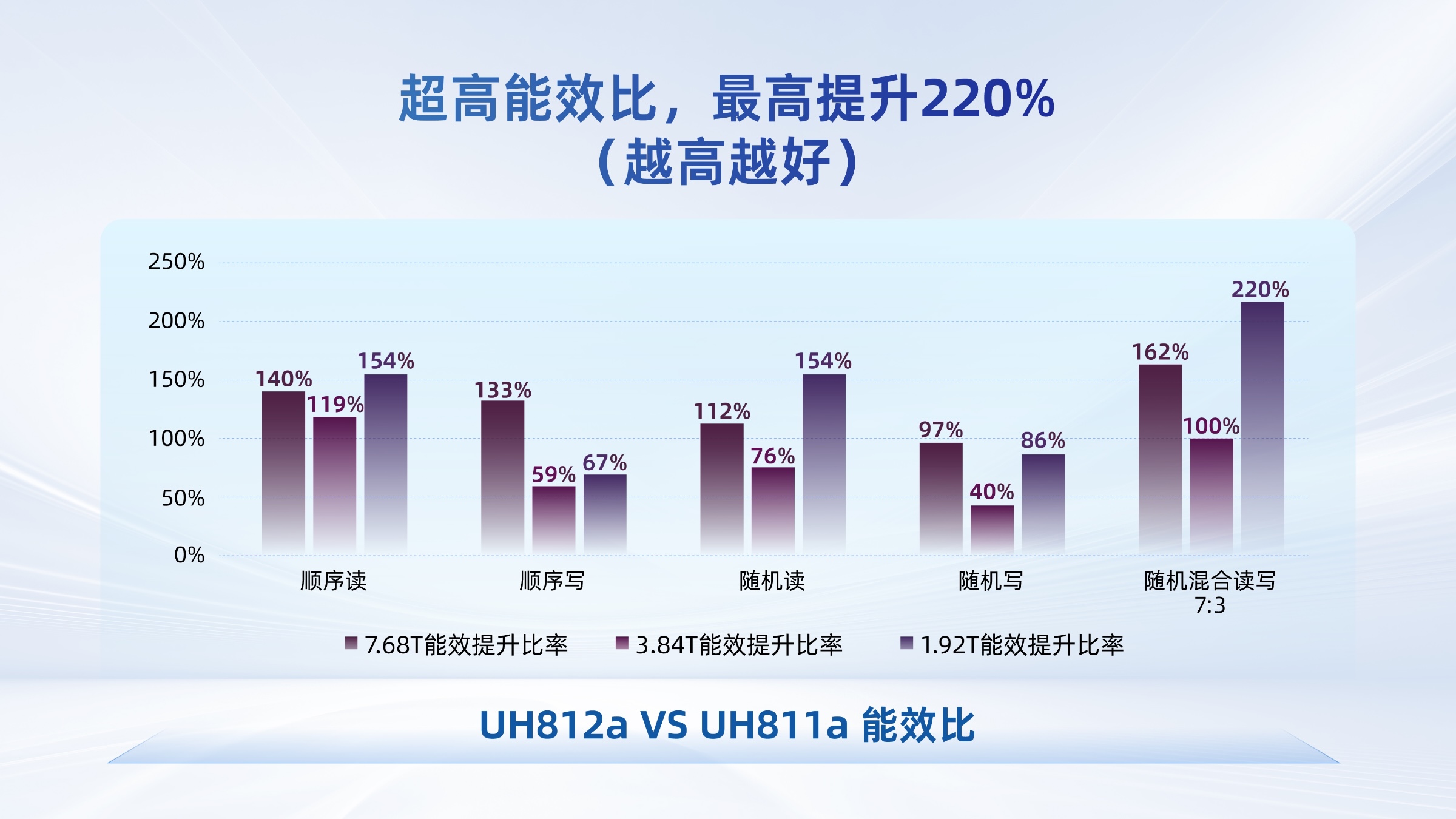 在DeepSeek等大模型加速落地的今天,存儲(chǔ)系統(tǒng)的價(jià)值已從單純的“數(shù)據(jù)容器”升級(jí)為“智能化基礎(chǔ)設(shè)施的核心組件”。憶聯(lián)基于產(chǎn)品的高能效比設(shè)計(jì)、場(chǎng)景化技術(shù)特性構(gòu)建及智能化運(yùn)維能力,為數(shù)據(jù)中心客戶提供最佳TCO存儲(chǔ)解決方案。以UH812a為例,其單位成本下的性能(IOPS per $)指標(biāo)比上一代Gen4產(chǎn)品(UH811a/UH831a)提升了1.62-2.2倍。這不僅能為客戶節(jié)省數(shù)據(jù)中心整體使用成本,同時(shí)存儲(chǔ)效率、可靠性的提升也將為用戶提供更好的業(yè)務(wù)體驗(yàn),助力企業(yè)長(zhǎng)期業(yè)務(wù)增長(zhǎng),實(shí)現(xiàn)經(jīng)濟(jì)效益與社會(huì)效益的協(xié)同與共贏,增強(qiáng)企業(yè)的市場(chǎng)競(jìng)爭(zhēng)力。