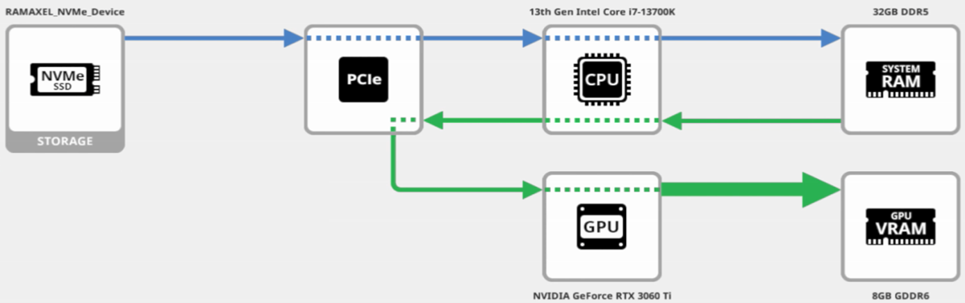 在DeepSeek本地加載運(yùn)行過程中,SSD是整個(gè)數(shù)據(jù)流的第一棒。當(dāng)DeepSeek完成本地部署后,模型文件即保存在SSD中。當(dāng)用戶加載模型時(shí),會(huì)先將大模型文件從SSD讀取到系統(tǒng)內(nèi)存中,再由內(nèi)存中轉(zhuǎn)傳輸?shù)斤@存,由GPU進(jìn)行推理運(yùn)算。因此,SSD的性能越好,就能越快將數(shù)據(jù)傳輸?shù)紾PU進(jìn)行計(jì)算,體現(xiàn)在實(shí)際應(yīng)用中就是大模型的加載時(shí)間越短。