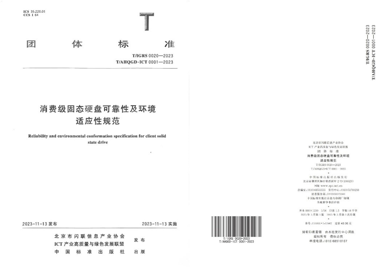 近日,由北京市閃聯信息產業協會聯合憶聯、聯想等多家企業共同制定的團體標準——《消費級固態硬盤可靠性及環境適應性規范》(以下簡稱:《規范》)正式由中國標準出版社出版發行。該《規范》明確了消費級固態硬盤在產品壽命、極端環境適應性及電磁兼容性等方面的可靠性技術要求。此次發行標志著該團體標準全面進入實施階段,將有力推動消費級存儲行業整體可靠性水平的提升。