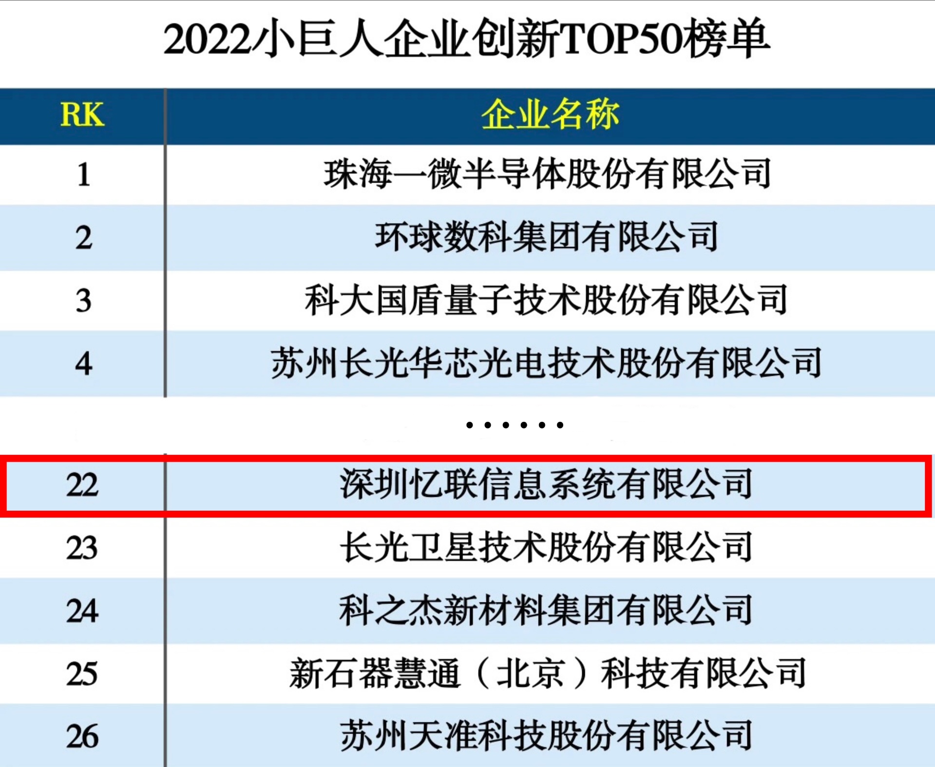 近日,由中國科學院旗下權威媒體《互聯網周刊》、eNet研究院、德本咨詢聯合發布的《2022小巨人企業創新排行榜》正式發布,憶聯憑借領先的自主研發能力和綜合發展實力榮耀上榜,總排名22,國內存儲廠商排名第2。