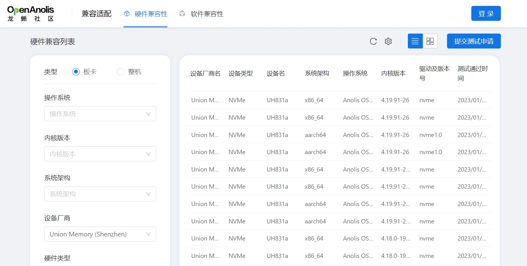 UH811a/UH831a已在Anolis OS硬件兼容列表中